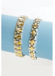 For hundreds of years, magnets have been hailed for relieving pain and stiffness, improving circulation, reducing swelling and easing arthritis discomfort. Now you can get all the healing, energizing benefits of a magnetic health product in a stylish silver-and-gold toned bracelet. Women's are designed with 6 powerful magnets; men's have 9. Lightweight and elegant-great for casual, sports for dress. Clasp Closures.Men's 9" Long.